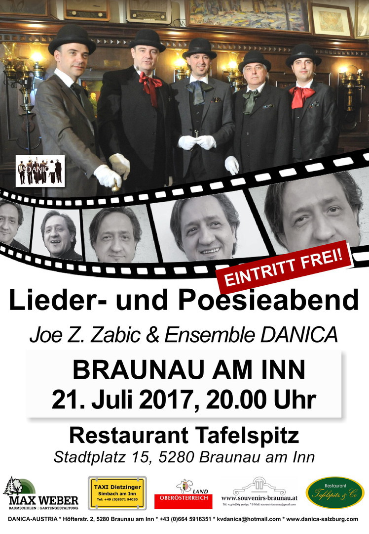 Путујући програм "Кафана код Јеремије" гостовао је крајем јула месеца 2017. год. у аустријском граду Браунау. Гост програма био је песник и аутор, Јое З. Жабић.